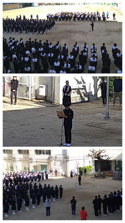 昨日が雨天であったため、本日、新入生と2・3年生の対面式を行いました。