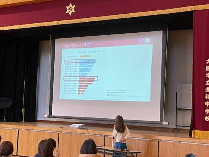 1年生の自然体験保護者説明会に先立ち、保護者の方向けの携帯スマホ安全教室を実施しました。J-COMから講師の先生をお招きし、子どものSNSトラブルについて大人が気をつけるべき点をお話いただきました。