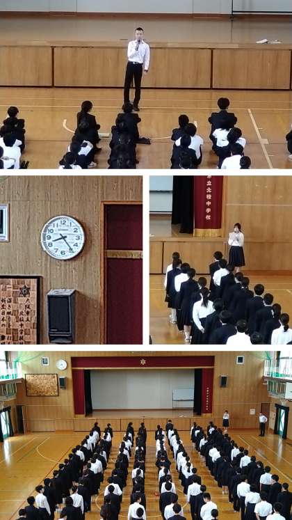 今朝は、1年生の学年朝礼がありました。担当の先生からは、中学校生活が始まって約1月となりましたが、「もう、慣れましたか?」と問いかけ。