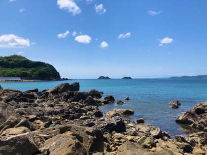 化石探しを行った海岸から見えた景色はとても綺麗でした!