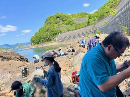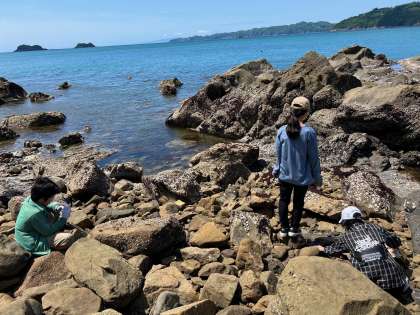 綺麗な景色が見える所で、生徒たちも楽しそうに化石を探していました。