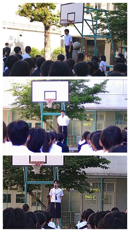 続いて、生活委員会からは「あいさつについて」、体育委員会からは「自分から進んで行動しよう!」という声かけ、図書委員会からは「図書室のルールを守ろう!」という呼びかけと、あわせて、『おみくじイベント』についてのお話がありました。