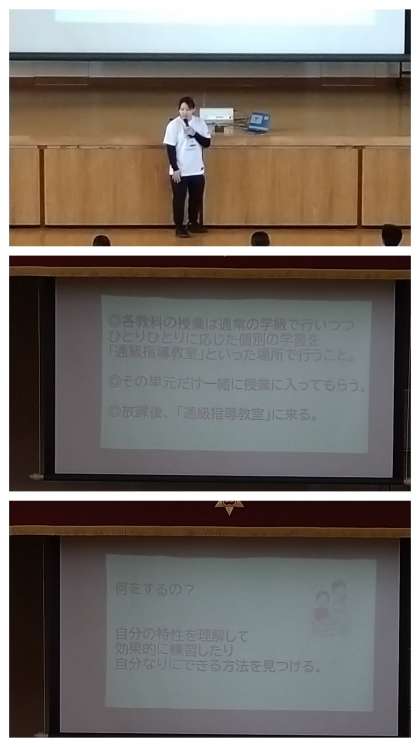 担当の先生からは、今年度より本校で開設した『通級指導教室』についてパワーポイントにより分かりやすく説明してもらいました。