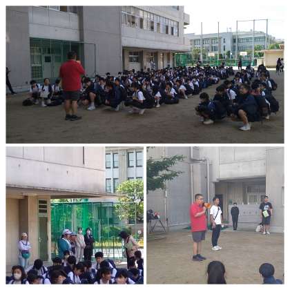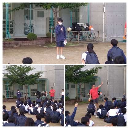 開始式の様子です!保護者の皆さんもお見送りに来ていただいています。
