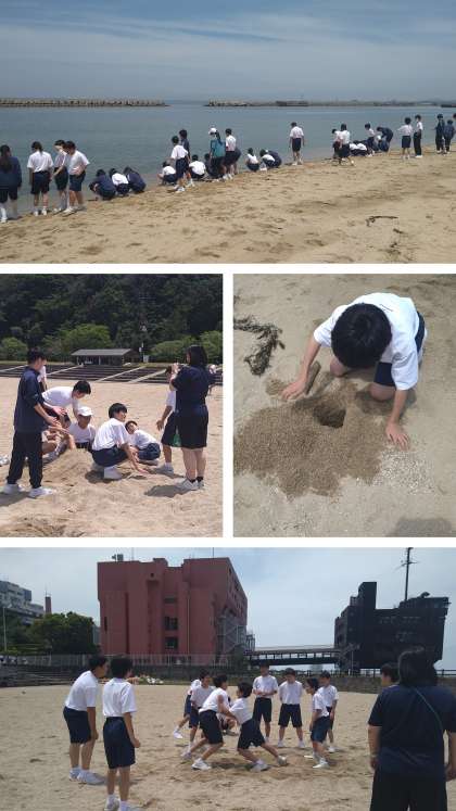 砂浜でのいろいろな遊び方!相撲あり、一人穴掘りあり、砂山づくりあり、海水遊びあり、すごいバリエーションです!
