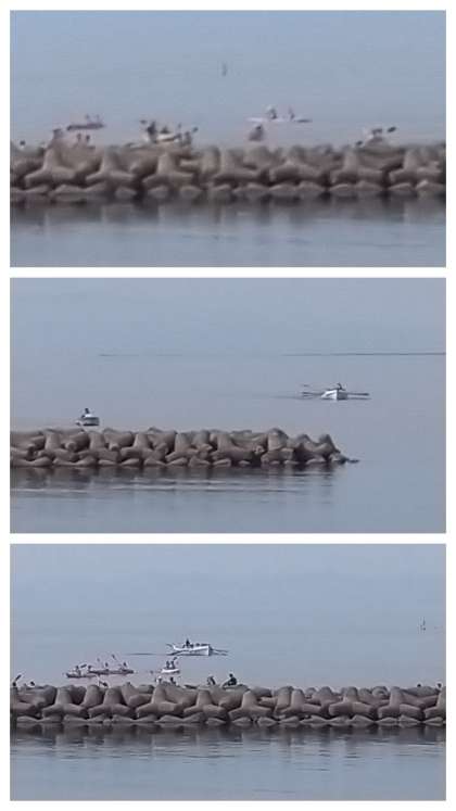 砂浜から遥か彼方にカッターとカヌーの姿が!「あんなところまで行くのか!」「見えますか?」