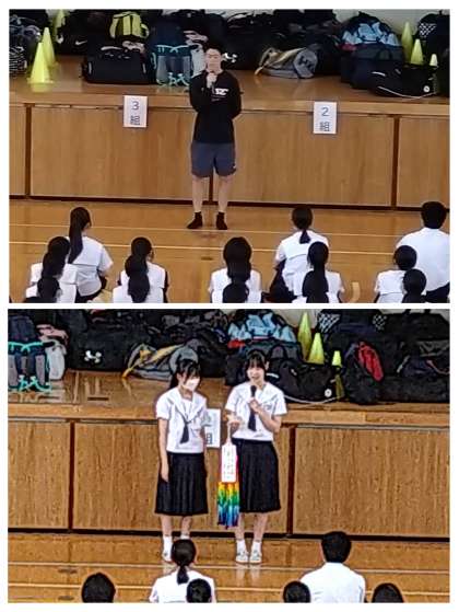また、アルティメットというスポーツは審判がいない中で、お互いに競い合っているところが魅力です。『修学旅行』では、民泊や散策など先生のいない中、ルールを守って楽しく活動できるのが北稜中学校の魅力という内容のお話かありました。