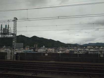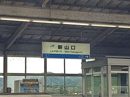 新山口駅到着!曇ってはいますが雨は降っていません。西に行けば行くほど天候は回復?