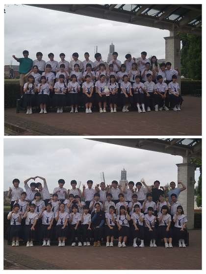 学級写真後に、さぁ班別行動開始です!「楽しんで〜!」