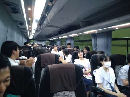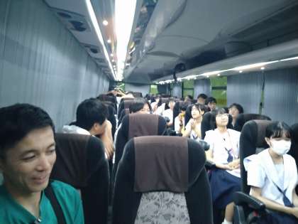 宿舎に向かうバスの中では、カラオケ大会が始まりました。