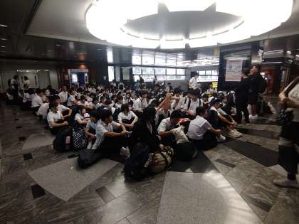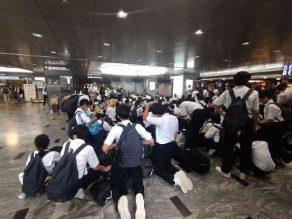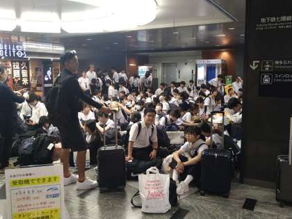 博多駅到着!新幹線には、余裕で乗れます。バスの運転手さんが頑張ってくれました。「ありがとうございます!」
