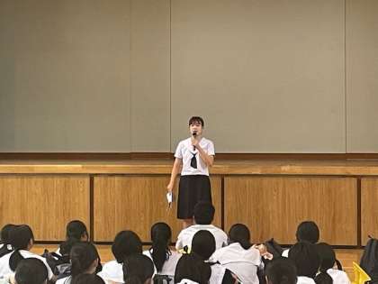 6時に帰校し、体育館で解散式が行われました。松岡先生から衝撃的なお話が!実は、消灯後しばらく経って、どこからかM先生の怒鳴り声(かなりの大声)が・・・。誰か怒られていると生徒たちは恐れおののき、そのまま布団の中で眠ったようですが、M先生からは解散式で「起こる練習をしていた」と言われましたが、生徒をはやく寝かせる作戦だったことは確かです。「ビビッて、寝た生徒の皆さん、申し訳ありません。」「でも、よく眠れたでしょ!」
