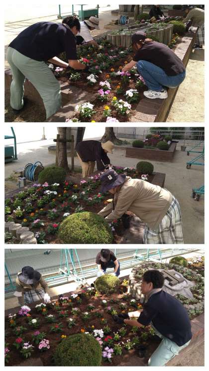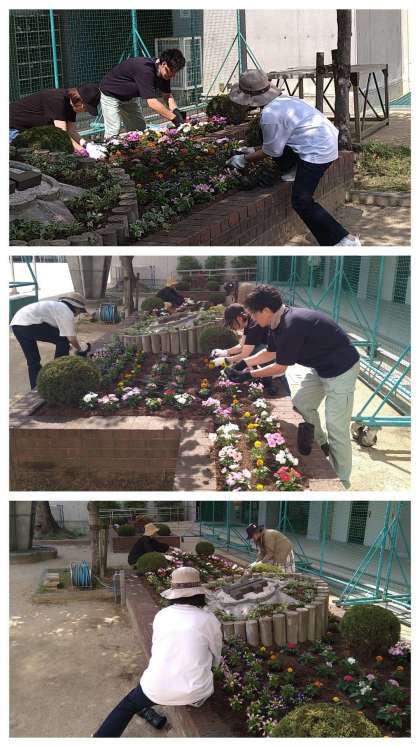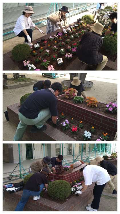 PTAの緑化委員会の皆さん、暑い中、お手伝いいただき誠にありがとうございます。