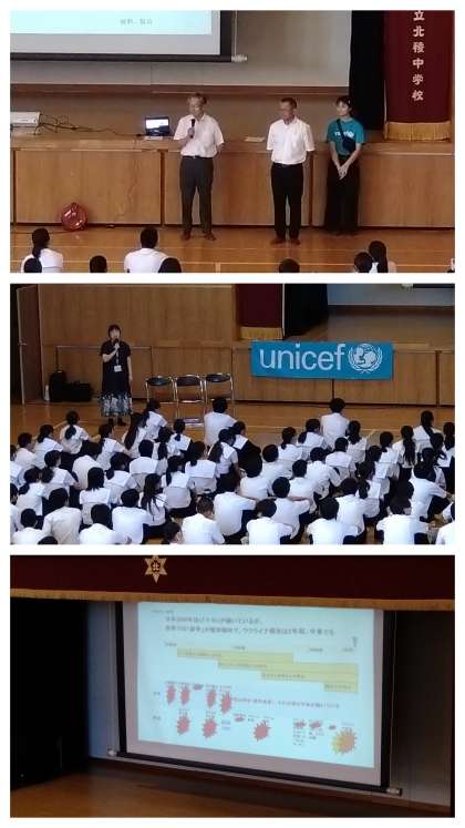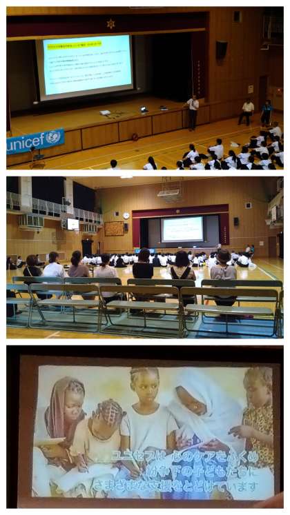 今回、ご講演をしていただいた『ユニセフ』とは、1946年に創設され、子どもの権利を擁護する主要な機関として、戦争で被災した子どもに限らず子どもたちの健やかな成長のため、教育、保健、水と衛生、栄養、保護等の支援活動を行っています。