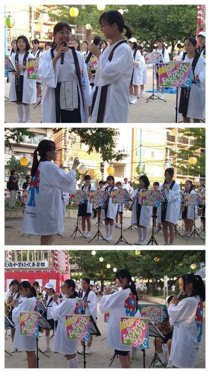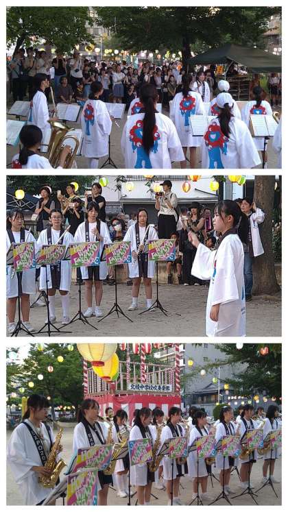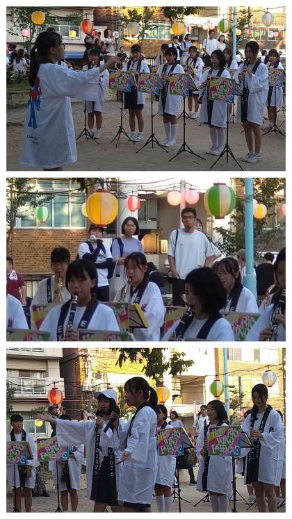 おおぜいのお客さんの中、関西万博のおそろいの法被姿で演奏してくれました。