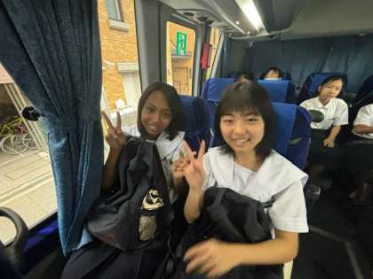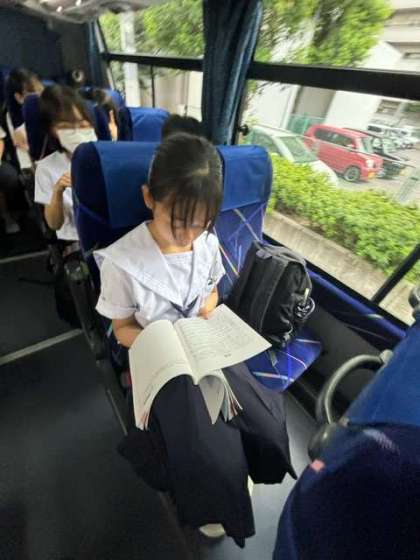 バスで泉南市りんくうにある古着・デッドストックの分別工場・販売ショップ(ファイバーシーディーエム株式会社)まで移動です。「何だか楽しそう〜」