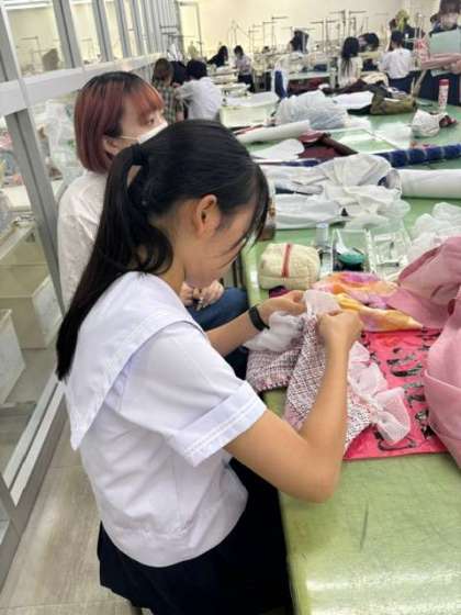 YKP4日目は、ファッションショー衣装製作の続きと仕上げに取りかかっています。フィッティングやサイズ調整、飾りつけなど、個性あふれる製作でとても楽しく取り組んでいます。
