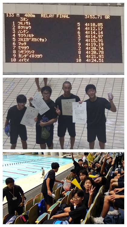 3年生の男子がやってくれました。最終日最終競技の100m×4のフリーリレー(北稜チーム選手:カタギリ・アンドウ・ヤマムラ・サカグチ)で銀メダル獲得!
