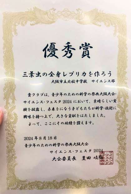 青少年のための科学の祭典大阪大会・サイエンスフェスタ2024の最終日に、本校サイエンス部が『優秀賞』を受賞しました!