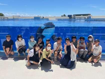 サイエンス部で神戸須磨シーワールドに来ました!西日本で唯一のシャチを見ることができました!これからオルカショーを楽しみます!