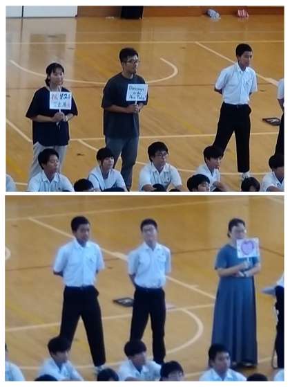 先生方は、メッセージを書いたうちわ?を掲げ、生徒たちは精一杯の声と拍手でご出産をお祝いしました。