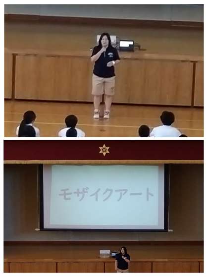 1年生は『モザイクアート』に取り組むとのこと。「一人ひとりの小さな力が合わさって、大きな素晴らしい作品ができる。」