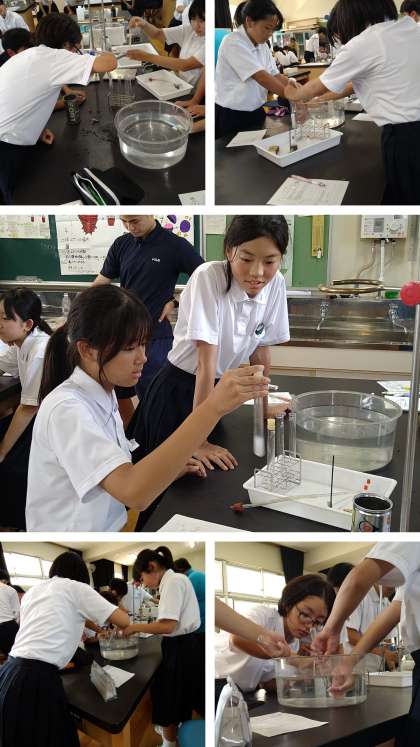 ある生徒からは「実験史上最高に面白かった!」と声が出るほど、エアコンのないたいへん暑い理科室での実験でありましたが生徒たちは集中していました。