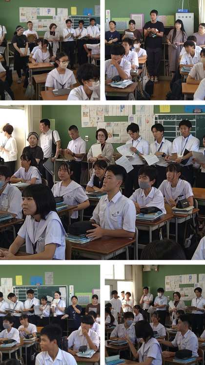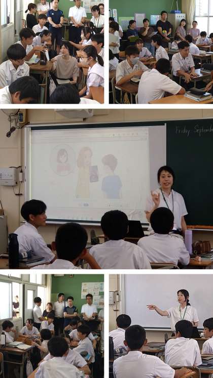 写真は、『研究授業』の様子です。生徒たちはいつもとは違う雰囲気で緊張した様子もありましたが、本当によく頑張ってくれました(子どもたちも担当の先生を応援してくれているように感じました)。