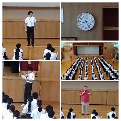 今朝は、1年生の学年朝礼があり、教育実習生の勝田先生より、生徒の皆さんに伝えたいことをテーマにしたお話がありました。