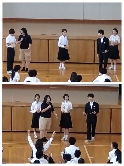 続いて、10月29日(火)に開催される音楽発表会『合唱コンクール』の発表順の公開抽選が行われました。1番を引いたクラスはプレッシャーはかかりますが、大谷選手のように『先頭打者ホームラン』をぶちかましてください。「応援しています!」