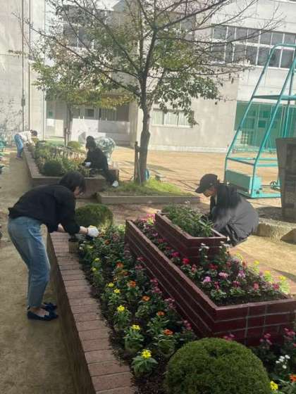 PTAの緑化委員さんが、花壇にきれいなお花を植えてくださいました。