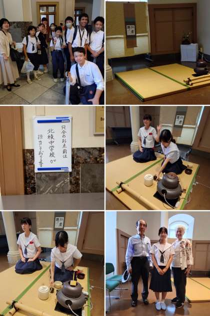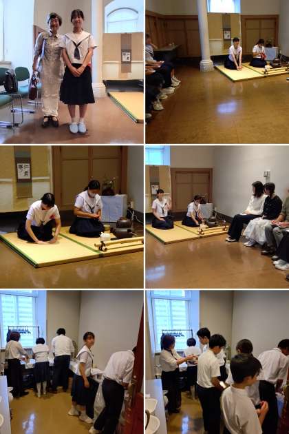 今日は、14時05分から本校茶道部の『お点前』がありました。明日も11時20分〜12時40分までの時間帯で行われます。