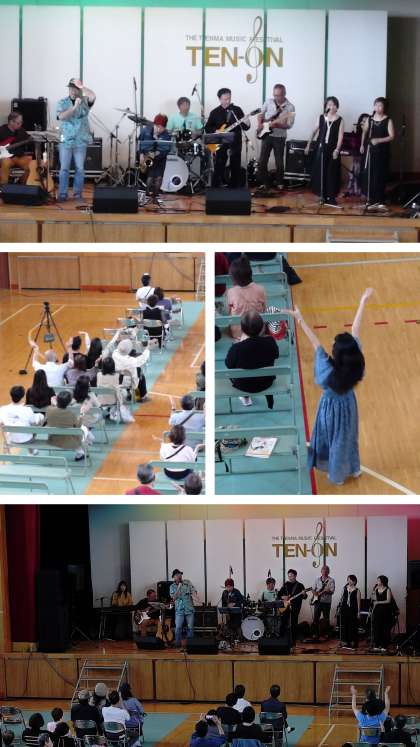 北稜中学校の体育館じゃないみたいです。吹奏楽部の演奏のあともたくさんのお客さんが音楽を楽しんでいます。