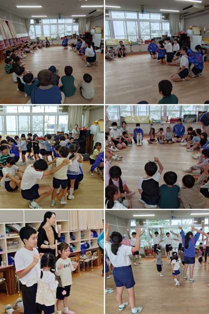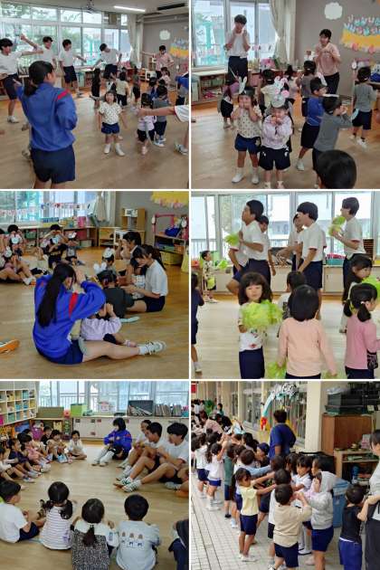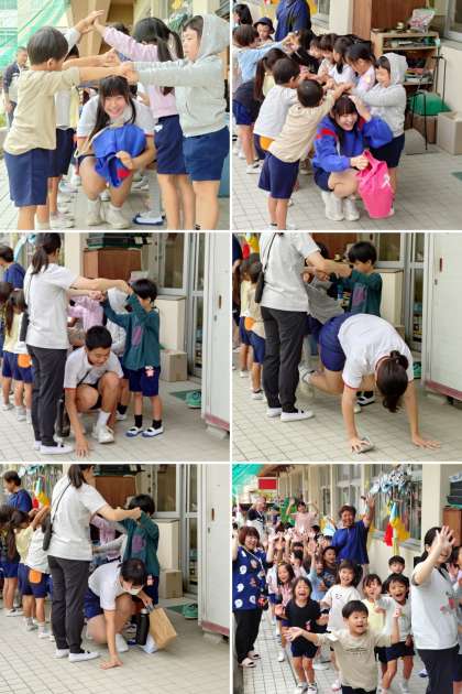 最後には、かわいい園児が花道をつくってくれてのお見送りです。これが中学生にとっては、腰や脚に筋肉痛が起こる(低い姿勢で足腰は痛いけれど笑顔で花道をくぐる)『試練の花道』。