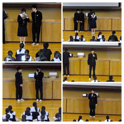 昨日の3年生の学年朝礼の様子です。一昨日に行われた各種委員会での報告がありました。