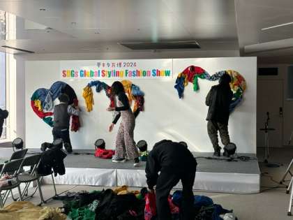 只今、通しリハーサルをしています。お天気も良く、会場は着々と準備が進められています。ぜひ皆さんでファッションショーをご観覧いただければと思います。