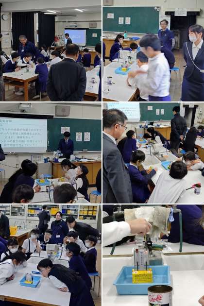 最後に酸性・中性・アルカリ性をBTB溶液による色の変化で調べる実験をしました。子どもたちは興味津々の様子でした。「中学校でまた楽しく学びましょう!」