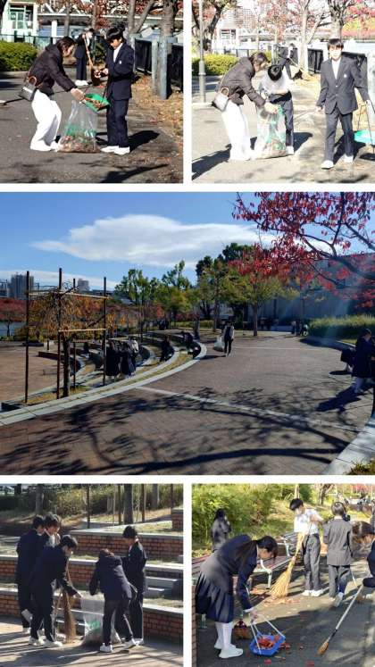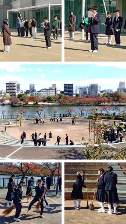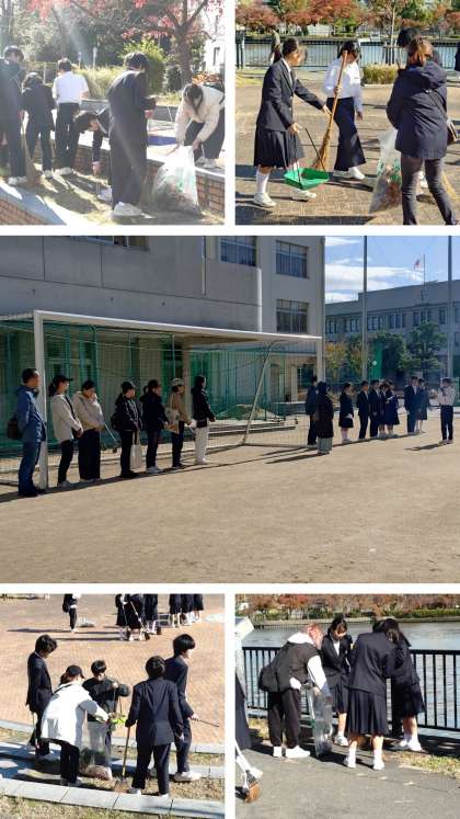 本日、期末テスト終了後の3限目に1年生とPTA緑化委員会の皆さんで大川沿いの清掃活動(『ふれあい清掃』)を行いました。
