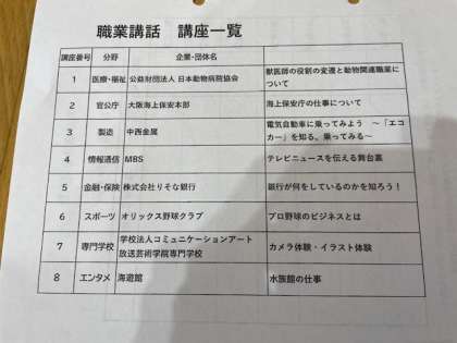 担当の先生からの説明、さらに「なぜこの仕事を選んだのか」というお話のあと、どのジャンルについて話を聞きたいかの希望調査がありました。