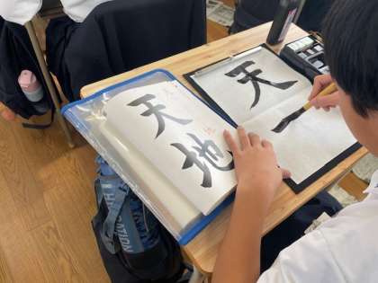 楷書の注意点を意識しながら、八法を網羅できる「天地」という語を書きました。