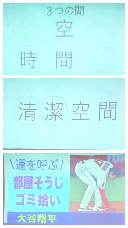 2つ目は、『空間』です。大谷選手は、清潔な空間をとても大切にしているようです。担当の先生からは、整理整頓を心がけてから計算のミスが少なくなった学生時代の経験を話されました。
