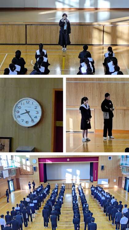 「あのお話から何を学びますか?」との質問に生徒からは「調子に乗り過ぎない」や「コツコツやることの大切さ」などの意見がありました。
