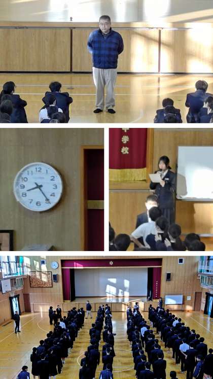 今朝は、1年生の学年朝礼がありました。F本先生が、18年前に妻と一緒に自転車で東京に行ったお話でした。