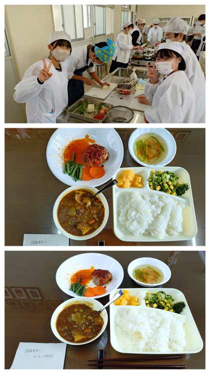 今日は、たまたま給食がカレーだったので、カレーハンバーグ定食にしていただきました。生徒の皆さんには、悪いけど最高でした!