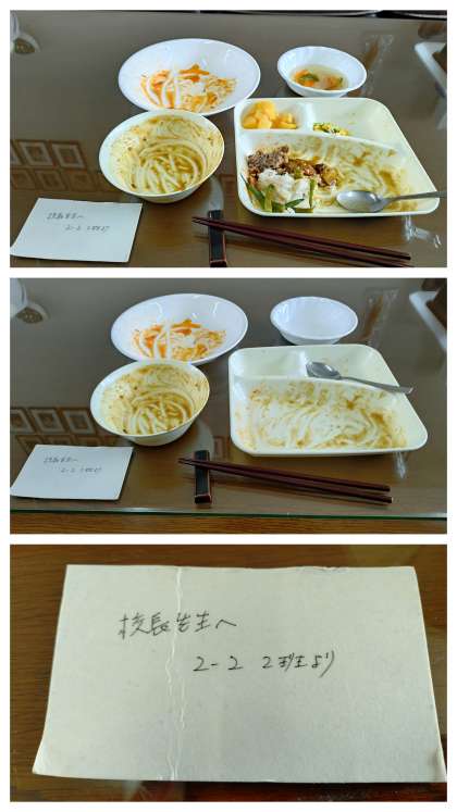 今日の2・3時間目の家庭科の時間に2年3組が『調理実習』を行いました。出来上がったハンバーグを2班の子どもたちが校長室まで持って来てくれました。