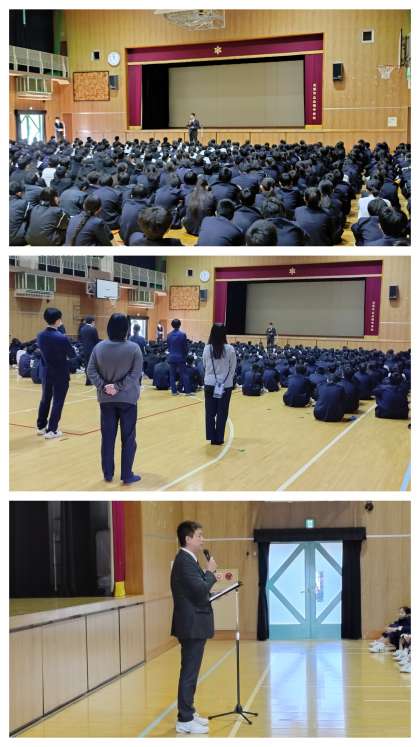 続いて、生徒指導主事より生活指導面に関わって『自分の身は自分で守りましょう!(交通ルールなど)』と『SNSの使い方に注意しましょう』という内容でのお話がありました。