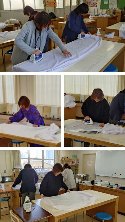 卒業式や入学式などの式典時に長机を覆う『白布』を、北稜元気アップのコーディネーター・ボランティアの皆さんが机にすっぱりかぶせられるように縫製してくれました。なんと20枚です。「本当にありがとうございます!」