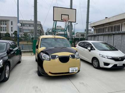 来校の際はかわいい車(「らいよん号」)でお越し頂き、他学年の生徒や給食業務の方からも注目を浴びていました。