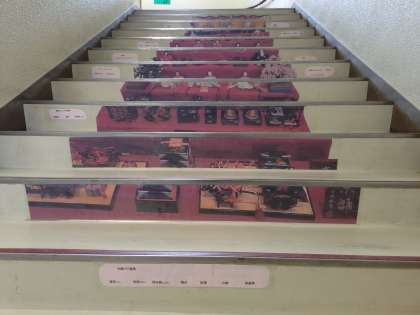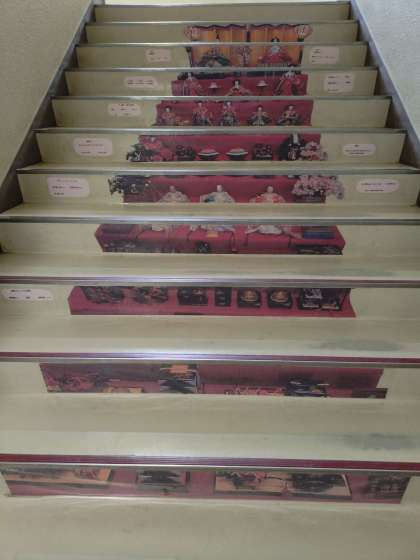 階段が 『ひな祭り』に!とても雅(みやび)な感じです。