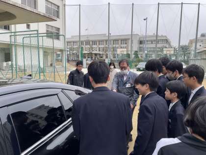 会社の取組や事業などを教えていただき、今回のメイン、エコカーの乗車をさせていただきました!